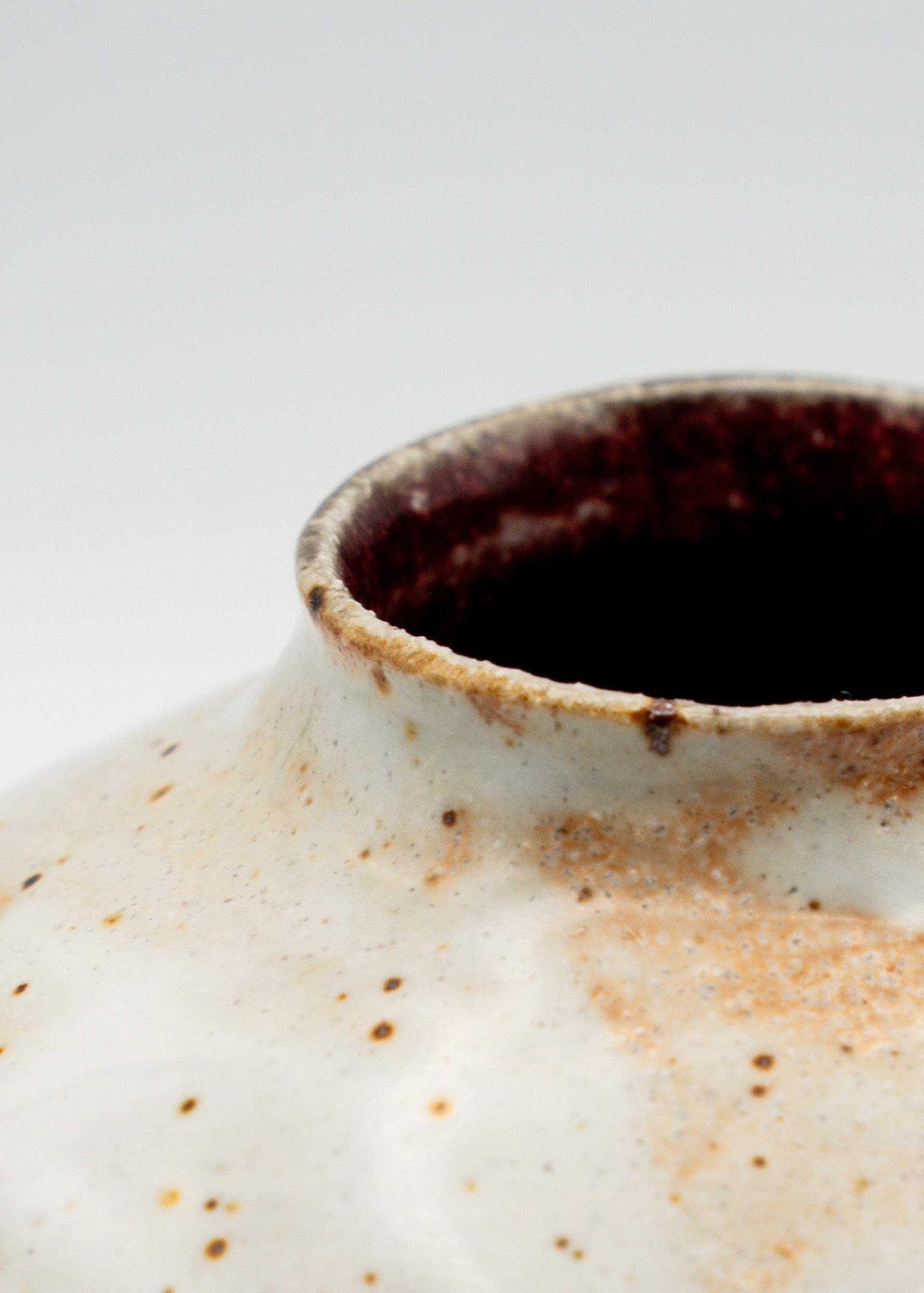 Hand painted, Glossy White, Cranberry (inside) Stony White Stoneware